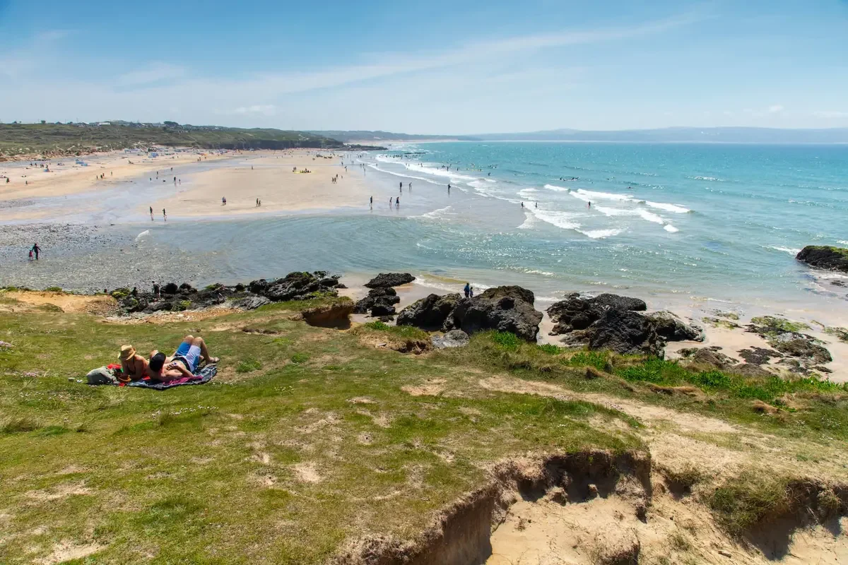 Gwithian, in St Ives Bay, is my friend Zoe's favourite — and Zoe is a surfer, so I trust her on this. It's the kind of beach where the sand just goes on forever, which means that even on a hot August Saturday you can find your own spot without having to step over someone else's picnic. The lighthouse at Godrevy sits just offshore, and if you time it right, the sunset behind it is stunning. Come for the surf if you can surf; come for the walk and the chips if (like me) you can't.